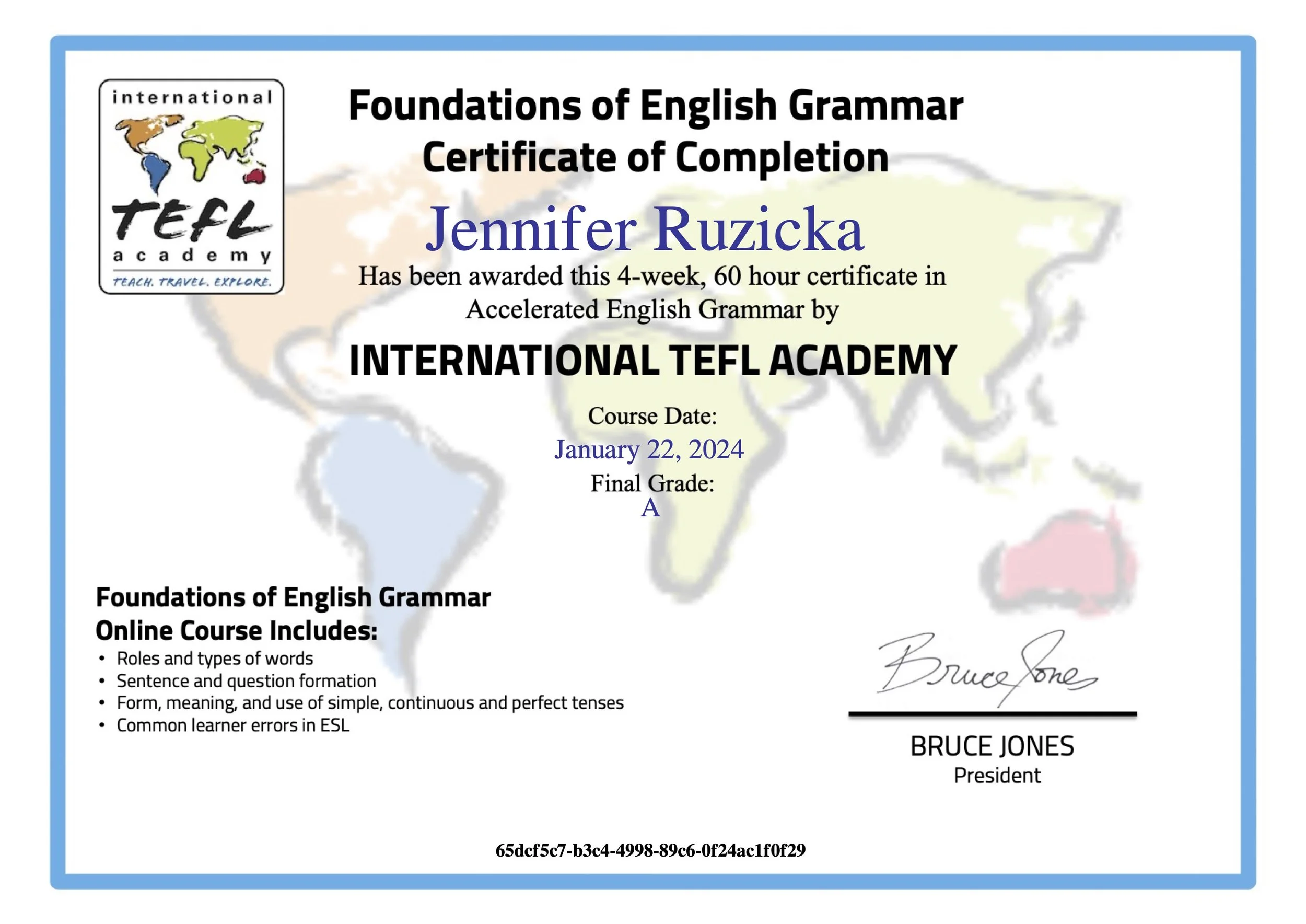Additional Certifications: Teaching English Online, Tutoring English, Grammar Fundamentals